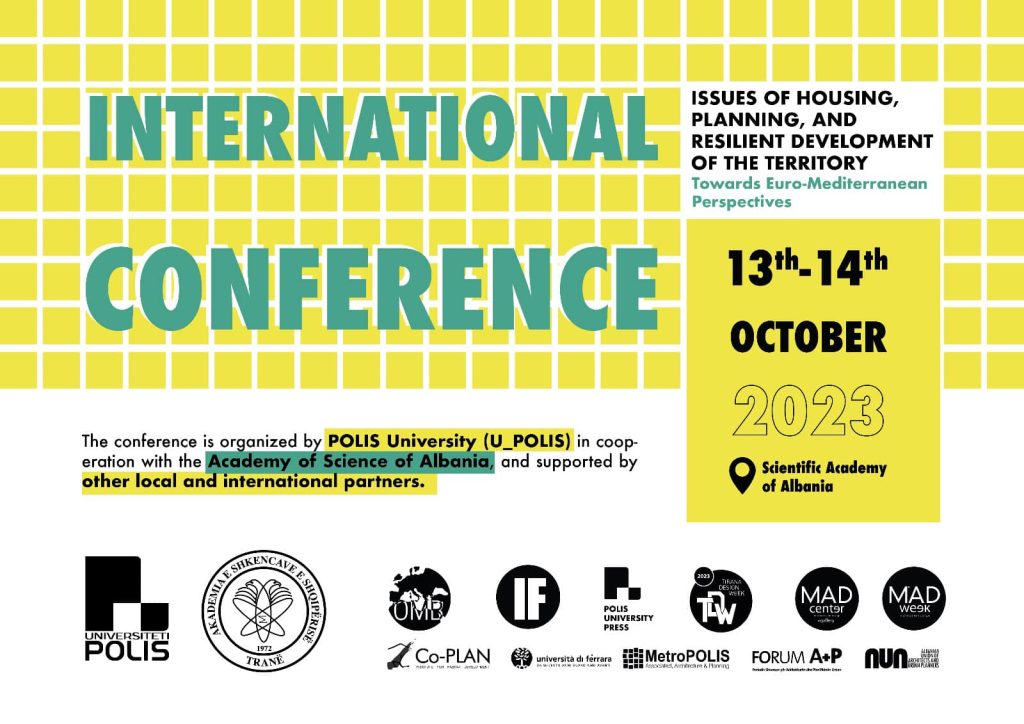 Konferencë shkencore ndërkombëtare e organizuar nga Universiteti POLIS në bashkëpunim me Akademinë e Shkencave e Shqipërisë dhe Co-PLAN. Konferenca synon të krijojë një platformë euro-mesdhetare për diskutimin e sfidave bashkëkohore që lidhen me strehimin, planifikimin, arkitekturën dhe zhvillimin rezilient të territorit, me pjesëmarrje të akademikëve, profesionistëve dhe politikëbërësve nga Shqipëria, rajoni dhe partnerë ndërkombëtarë.